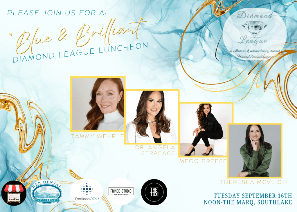 Join us for an unforgettable afternoon of elegance, inspiration, and connection at the Diamond League Women’s Luncheon on Tuesday, September 16th at 12:00 PM at The Marq in Southlake.